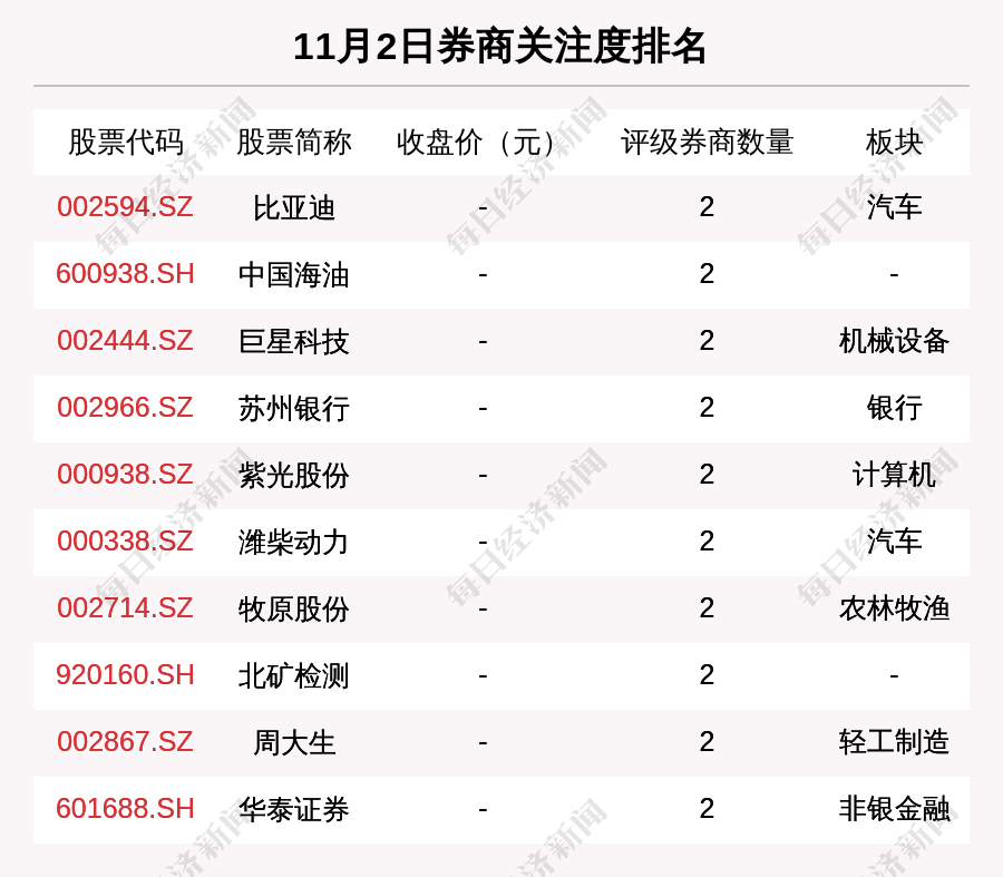 從券商對(duì)個(gè)股的關(guān)注程度來(lái)看,有23只個(gè)股獲得多家券商關(guān)注,券商關(guān)注數(shù)量排名居前的個(gè)股是比亞迪(002594.SZ)、中國(guó)海油(600938.SH)、巨星科技(002444.SZ)。