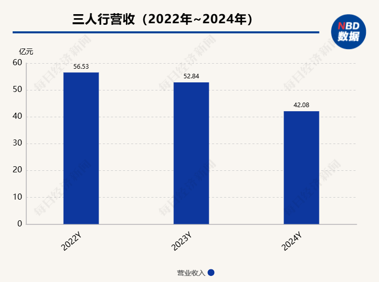 今年前三季度,業(yè)績下行趨勢仍未扭轉(zhuǎn)。三人行實現(xiàn)營業(yè)收入25.69億元,同比下降16.72%,歸母凈利潤1.44億元,同比下降20.48%。
