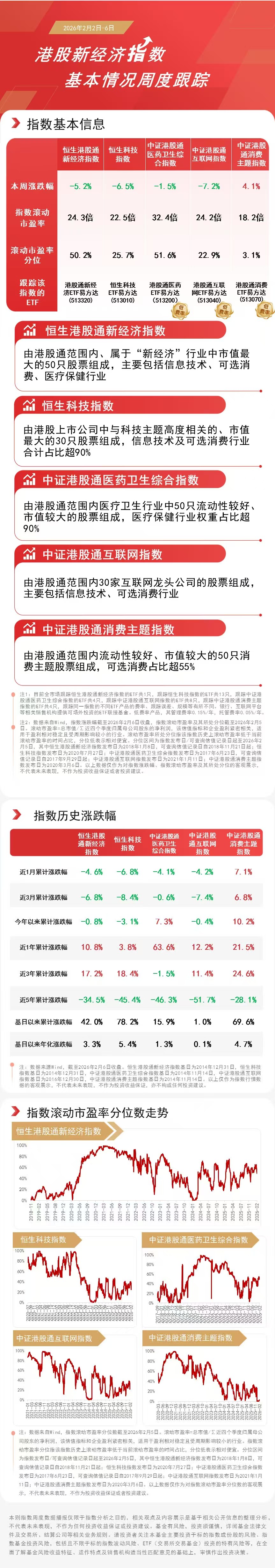 本周,港股震蕩分化,消費股逆勢走強,科技、醫(yī)藥股回調(diào),南向資金周度凈買入超560億港元、創(chuàng)去年10月以來新高。指數(shù)層面,中證港股通消費主題指數(shù)上漲4.1%,中證港股通醫(yī)藥衛(wèi)生綜合指數(shù)下跌1.5%,恒生港股通新經(jīng)濟指數(shù)下跌5.2%,恒生科技指數(shù)下跌6.5%,中證港股通互聯(lián)網(wǎng)指數(shù)下跌7.2%。