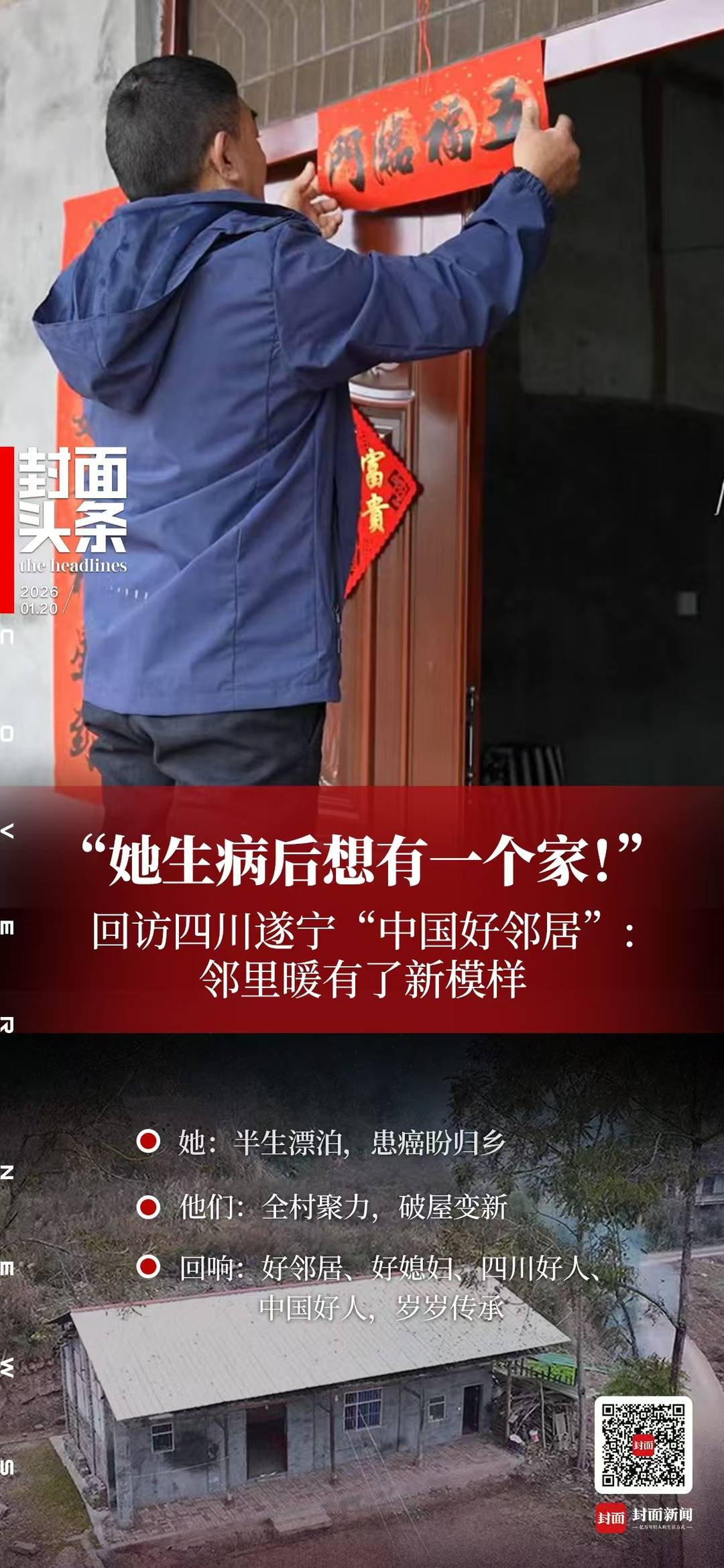 一年前的春節(jié)期間,四川遂寧射洪市官升鎮(zhèn)青果村,鄉(xiāng)親們眾籌資金、冒雨修房,為患癌的鄉(xiāng)鄰圓“回家夢”,故事刷屏全網(wǎng),被億萬網(wǎng)友稱為“中國好鄰居”。