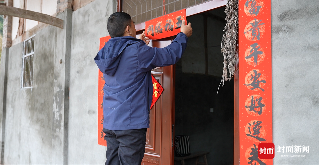 年味漫過川中丘陵。記者沿著村路再次走進(jìn)射洪市官升鎮(zhèn)青果村,剛從廣東珠?;卮ǖ捻n興海,正在貼春聯(lián),而正屋門楣上掛著的艾草已經(jīng)枯黃。