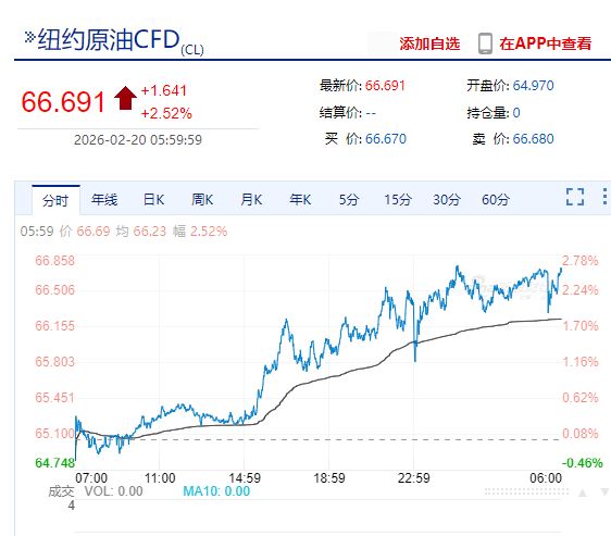 紐約原油CFD報(bào)66.691美元/桶,漲幅2.52%;布倫特原油報(bào)71.534美元/桶,漲幅2.53%。