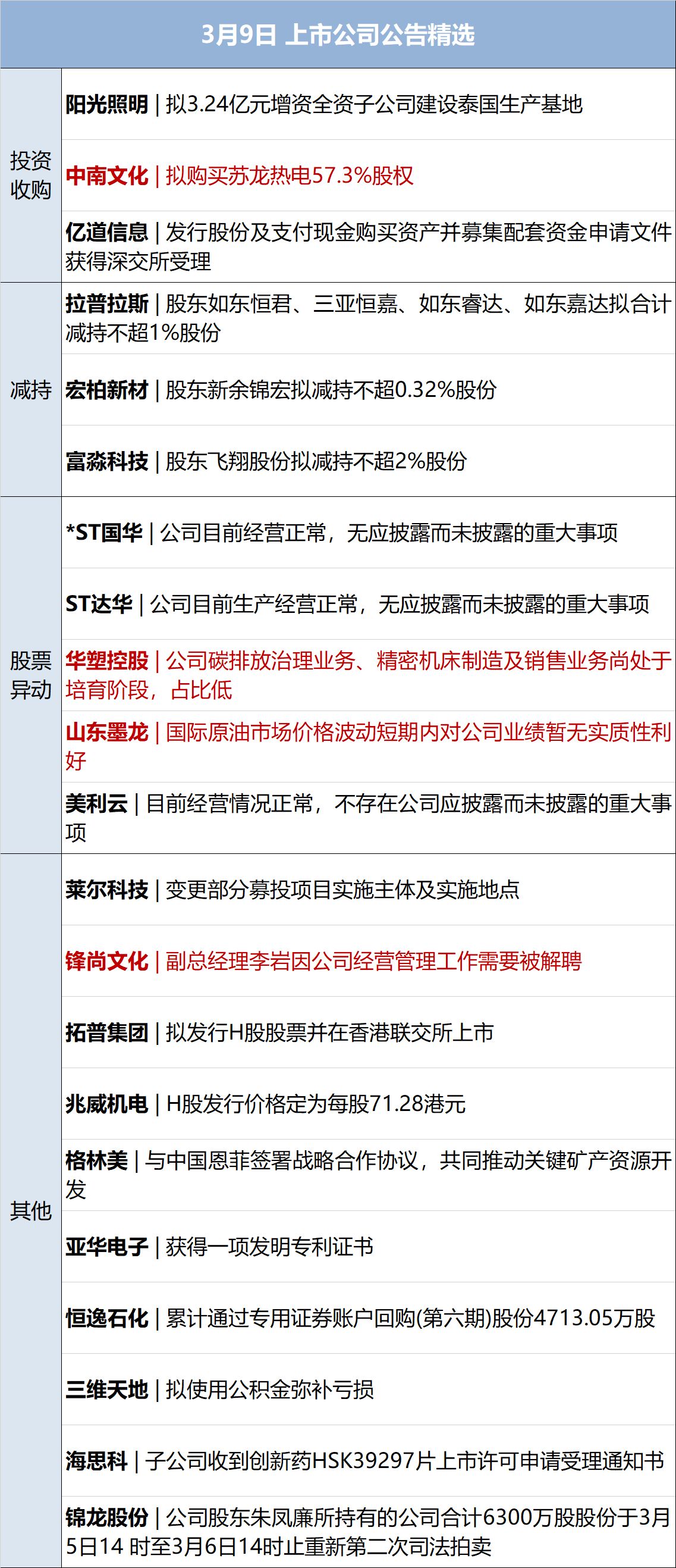 高鑫零售(HK06808,股價1.65港元,市值157.42億港元):3月8日,大潤發(fā)母公司高鑫零售公告稱,鑒于李衛(wèi)平女士至今仍未能取得聯(lián)絡(luò),其于一段長時間內(nèi)在未請假情況下,未能履行其職責,董事會已議決免除李女士作為本公司執(zhí)行董事之職務(wù),自3月8日起即時生效。董事會主席華裕能已獲委任為本公司首席執(zhí)行官、由非執(zhí)行董事調(diào)任為執(zhí)行董事,并獲委任為本公司之授權(quán)代表,自3月8日起生效。公告稱,李女士不再擔任本公司首席執(zhí)行官及授權(quán)代表,但其仍將繼續(xù)為本集團之雇員。