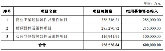 近半募集資金將投向“商業(yè)衛(wèi)星通信器件及組件項(xiàng)目”