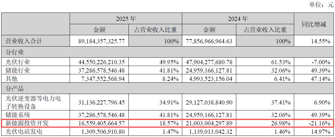盡管儲(chǔ)能系統(tǒng)業(yè)務(wù)期內(nèi)表現(xiàn)亮眼,但陽(yáng)光電源光伏逆變器面臨出貨量與營(yíng)收雙降壓力:作為傳統(tǒng)核心業(yè)務(wù),光伏行業(yè)2025年實(shí)現(xiàn)營(yíng)業(yè)收入445.5億元,同比下降7%;光伏逆變器全球發(fā)貨量為143GW,較上一年的147GW下降了2.72%。