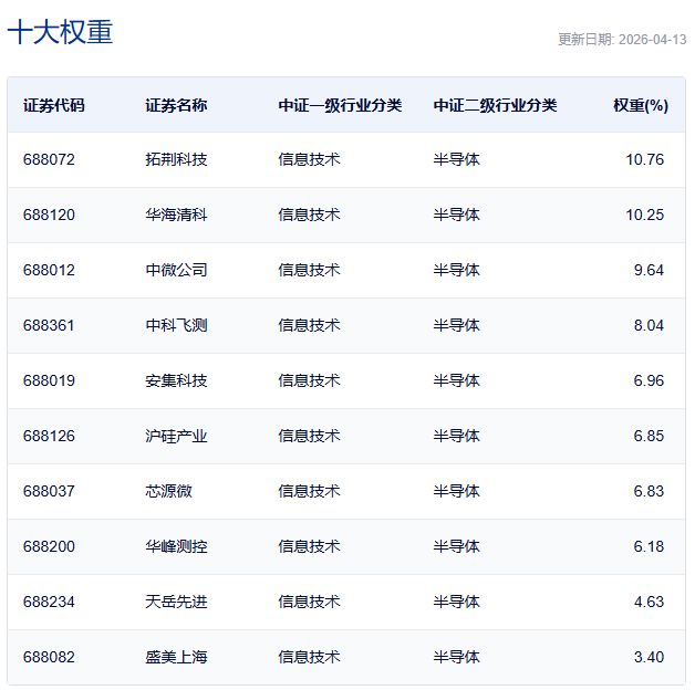 上證科創(chuàng)板半導(dǎo)體材料設(shè)備主題指數(shù)主要權(quán)重股
