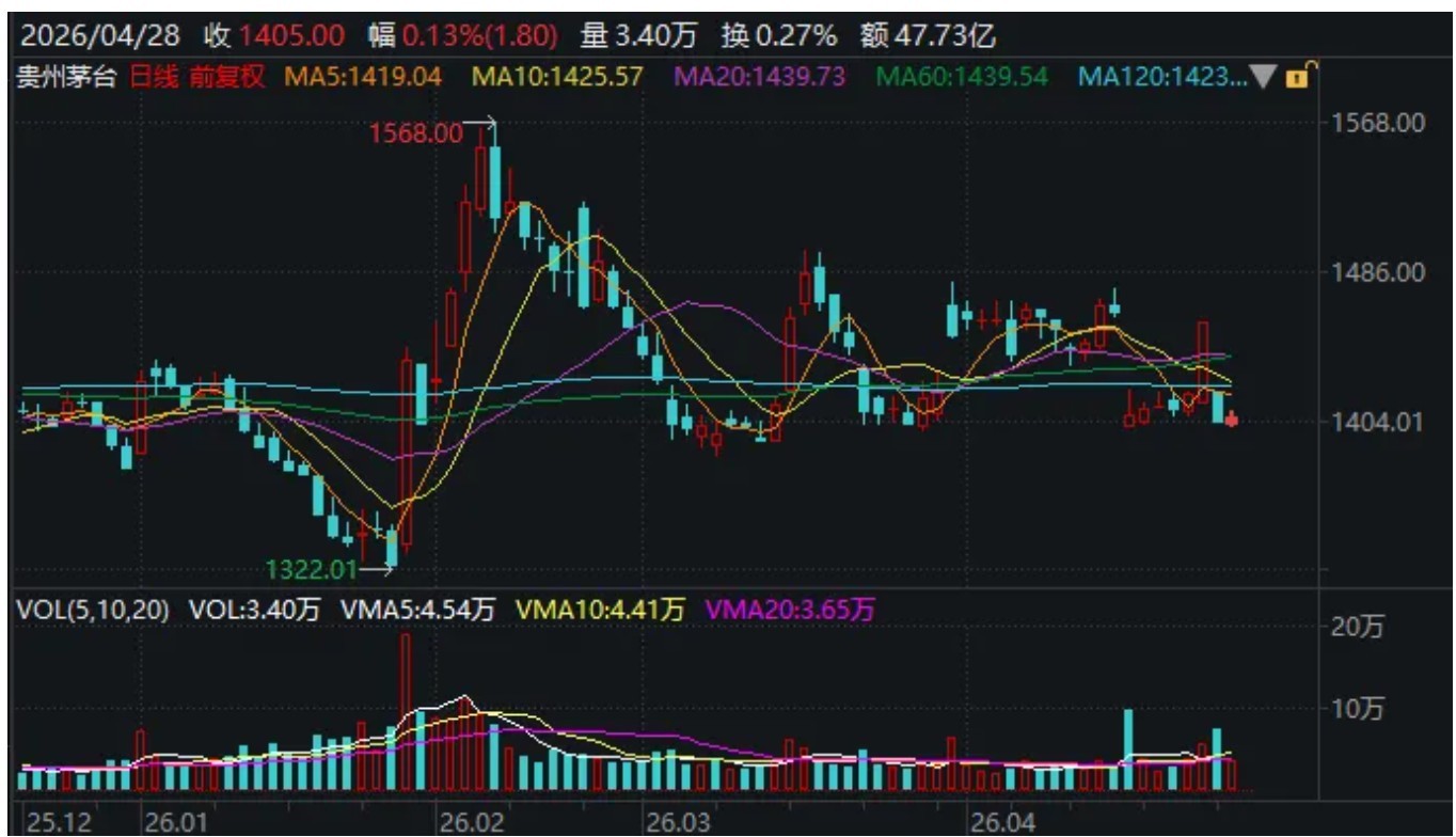 之后寒武紀(jì)也開始回落,同時(shí)貴州茅臺(tái)發(fā)力,股價(jià)超越寒武紀(jì)、源杰科技,奪回“股王”稱號(hào);