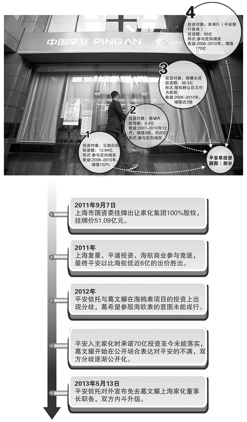 “因?yàn)槠桨苍?jīng)承諾投資70多億,把集團(tuán)發(fā)展成熟,但是到現(xiàn)在根本沒(méi)實(shí)行,他們一進(jìn)來(lái)基本在集團(tuán)就沒(méi)做事情,留守處理資產(chǎn),平安是違反當(dāng)時(shí)承諾的。”葛文耀昨日向《每日經(jīng)濟(jì)新聞》解釋其對(duì)平安不滿的原因,“平安進(jìn)來(lái)以后基本沒(méi)在集團(tuán)做過(guò)什么事情,我也主要是在上市公司(做事)。”
